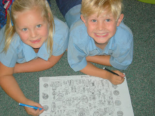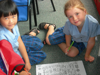 We choose a coloured plastic bean and used the matching coloured sentence to tell our buddy about our holidays, about our family, about what we are good at, about what we like to play.